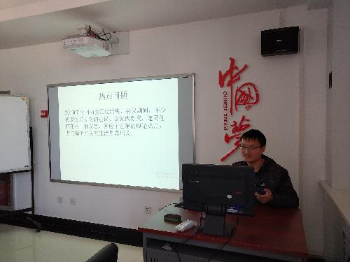 学生党员康馨文围绕“两会”政府报告中的十个热点话题,从科技、金融、教育、就业等方面向大家讲述了“两会”的知识及与学生息息相关的信息,使大家切实感受到了“两会”的氛围及精神。