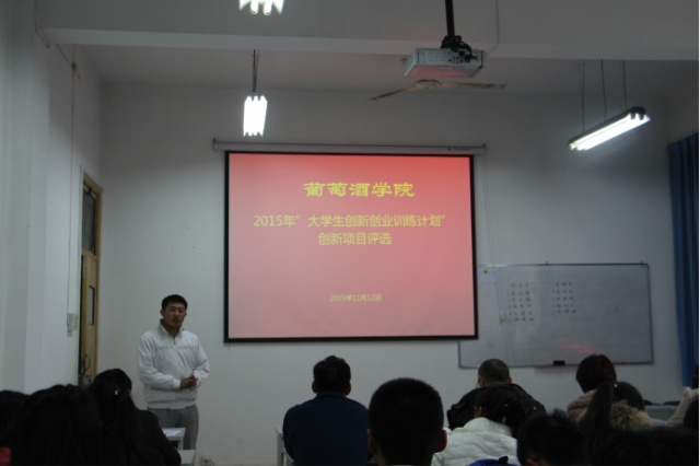 2015年大学生创新创业训练计划创新项目评选在学院四楼多媒体教室举行。评审申报答辩由教学秘书王玲老师主持,学院六位老师出席会议并组成专家评审小组。参加本次大学生创新申报的11个项目组成员均参加了本次评选答辩会。