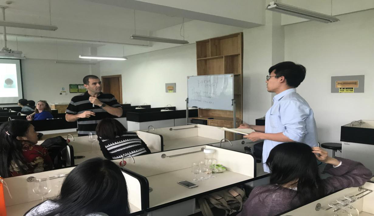 219品酒室成功开展。该报告会主要由美国加州理工州立大学农业、食品与环境科学学院Federico Casassa老师进行讲解,共有20余名学生参加。