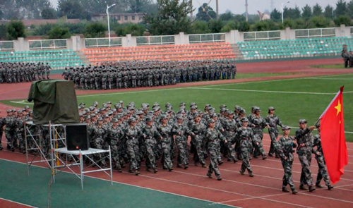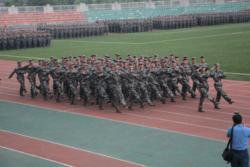 2015级大学生军训阅兵式暨总结大会在田径场隆重举行,第一动漫