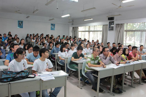 2015年暑期“三下乡”评选答辩暨经验交流大会。2015级全体同学参加大会。由7名团、学干部组成的评审团对7支队伍的实践成果进行了评比。书记学生工作助理邓亚丽老师应邀出席大会。