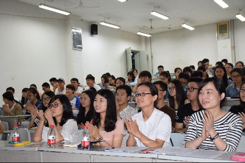 党委副书记邓亚丽老师,辅导员薛雪老师,朱美蓉老师,李雅男老师,赵星宇老师以及2015届团工委、学生会全体成员,14、15级班长、支书、寝室长组成的学生代表们参加大会。