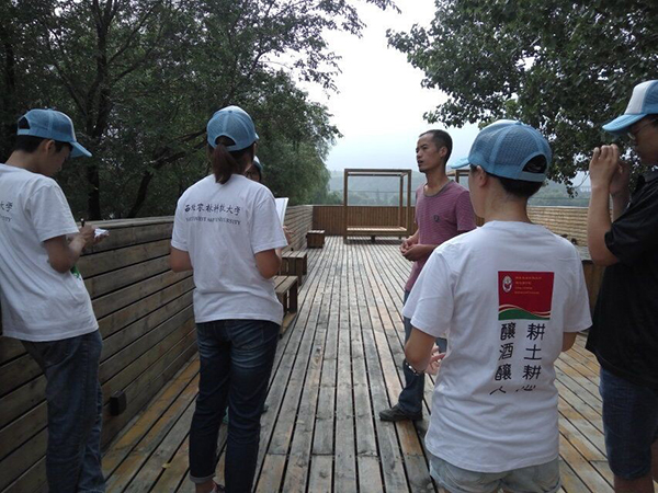 05级毕业生程阳学长。学长为我们耐心规划了路线。19日早晨,天气晴朗,远山隐于薄雾之后,美不胜收。我们在早餐之后便向玉川酒庄出发。程阳学长为我们进行了简单的介绍后,我们开启了今天的酒庄之行。