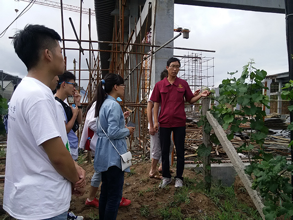 在师兄的带领下,我们还去了农业科技试验示范基地,那里小范围种植了17个品种的葡萄,如品丽珠、烟七三、玫瑰香、马瑟兰、黑匹诺和西拉等,酒庄会将这些品种都酿成酒并研究酒的特性。我们学习到了辨别不同品种葡萄的方法,即观察叶片,如赤霞珠是五朵梅花状且裂刻较深,而梅鹿辄也是叶片大且皱,裂刻浅。这些辨别葡萄的经验还需要我们在日后逐渐养成。除此之外,我们还大致参观了鲜食葡萄园,戎子酒庄打算将其作为采摘景点,这里的葡萄采用棚架,葡萄位于头顶上方,与酿酒葡萄相比,鲜食葡萄的果穗更大且较稀疏。