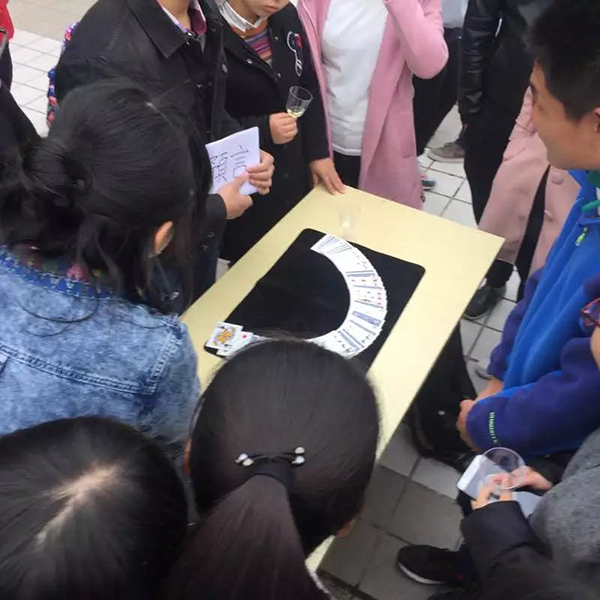 酒会进行的过程中,大家在各展台处领酒,喝着美酒,看着节目,玩着游戏。首先,由任艺同学为大家带来歌曲,点燃全场。之后,开始我们第一个游戏:正话反说,参与者们在台上头脑风暴,观看的同学们在台下捧腹大笑。在欧阳霖柯同学的歌曲和第二个游戏之后,魔术爱好者协会开始了神奇的魔术表演。同学们纷纷端着酒杯,前去观看魔术表演,感受它的神奇。之后的"酒要秀"游戏,秀出了同学们之间美好的友情,爱情,李子游同学的歌曲,再次点燃全场,"最默契"游戏,显示出朋友之间的默契程度。在整个酒会进行的过程中,电声乐队给同学们带来了一首又一首好听的歌曲,一次又一次的听觉盛宴,小七涂鸦社则给同学们的脸上和手上留下了一幅又一幅美丽又有趣的图画。