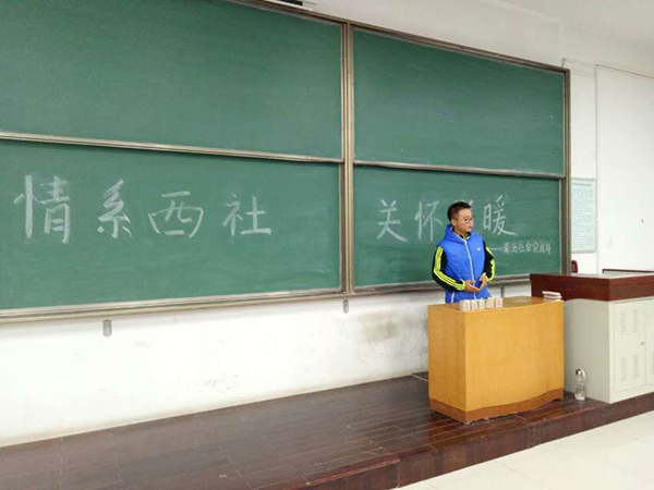 前期为使更多的西农学子了解渭南市澄城县冯原镇西社乡孩子的基本情况,我们通过在微信,微博及qq新闻媒体平台以及在宿舍楼下张贴海报,在西雕展示宣传板等多种方式对本次活动进行了宣传,鼓励大家奉献爱心,对山区的孩子们伸出援助之手,寒冬送暖。
