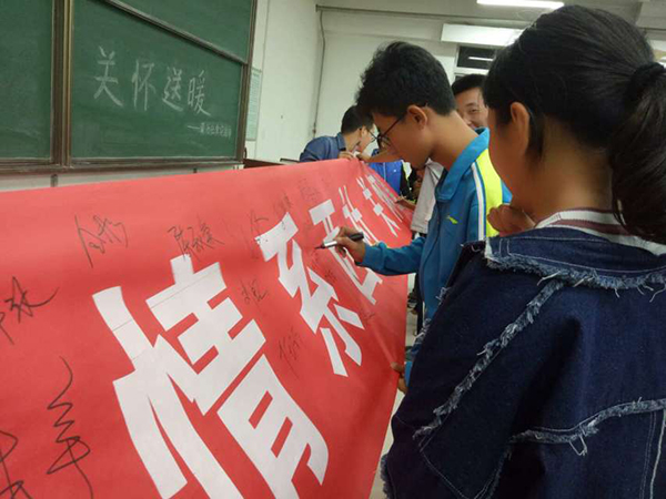 9月28日晚在8T11教室我们正式举办了本次活动。活动期间我们通过认真填写明信片以及条幅签字的方式呼吁大家奉献爱心,捐助衣物,书籍以及各种体育用品,在凛冬将至之际,向西社乡的孩子们献上我们国庆节的礼物,为他们送去冬日的温暖。