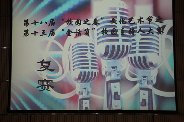 承办的第十八届“校园之春”文化艺术节之第十三届“金话筒”校园主持人大赛复赛在动物科技学院107报告厅拉开帷幕。卓越杯大学生主持人大赛金奖获得者宫政,广播站节目部前部长柴嘉轩,第十一届“金话筒”大赛金话筒得主何昭磊,第十二届“金话筒”大赛金话筒得主钟庆涛、铜话筒得主苏睿恒担任复赛评委。