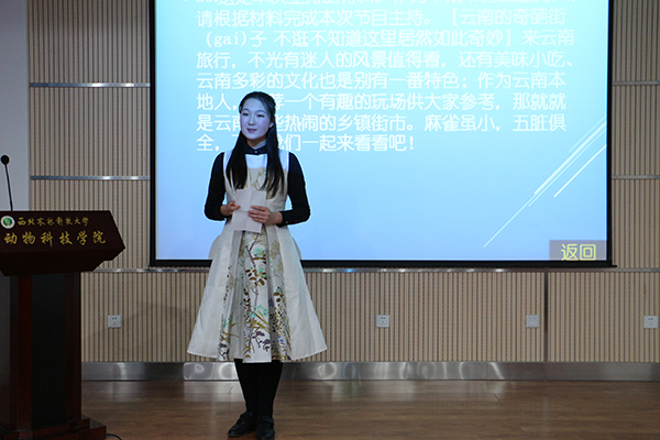 选手到场后依次抽取将要主持的题目,每人抽取两道题,从中选择一个比较有把握的题目。选手们根据题目先进行五分钟的场下准备,然后依次上台作限时三分钟的即兴演讲。这个选拔方式既考验了选手们的主持素质和临场发挥,又对他们关于主持题目的了解程度,即个人知识修养做出了一定的要求。复赛现场选手们着装得体,精神饱满,肢体动作协调,举止大方自然。标准的普通话,清晰流畅的表达,强烈的感染力,充沛的感情,这些都是各位选手的加分标准。选手们在台上的一言一语,紧扣主题、风格突出、特色鲜明的即兴主持内容,展示了他们良好的主持素质,代表了他们对播音主持的热爱与向往,新颖的话题、深刻的内容更是彰显了他们身为西农学子对生活、对国家的积极态度和用心关注,传递着满满的正能量。在座的观众与评委无一不为这精彩的表现鼓掌。