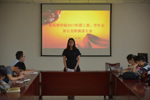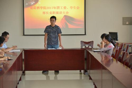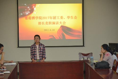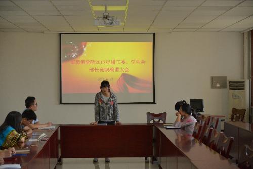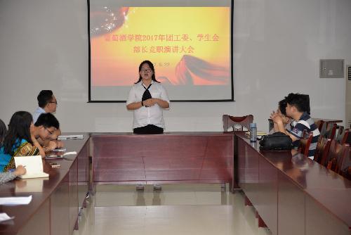 2017届团工委学生会部长竞演大会于学院六层会议室举办。团工委书记赵星宇主持本次大会,各部候选部长参与本次大会并作竞职演讲。