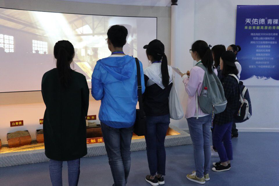天心佑夫一德,即“天佑德”也。在2017年7月8日,赴青海省青稞酒产业调研服务队来到了青海省海东市互助县,来到了这座秉承着“上天保佑善良纯德,永保天下,百姓安康”传承精神的青稞酒厂——青海省互助县青稞酒有限公司。该公司是中华青稞酒的发祥地,也是全国最大的青稞酒生产基地。我队在李善文女士的带领下,参观了天佑德酒厂,同时也了解了酒厂青稞酒的发展现状。