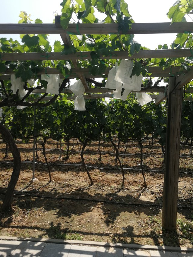 进入酒庄,映入眼帘的是葡萄长廊。翠绿的枝叶爬满了支架,架上的葡萄已经套袋。顺着碧绿的长廊走过,尽头处就是酒庄的主楼了。犹如城堡一般的酒庄主楼,散发着欧式庄园的浪漫气息。张裕卡斯特酒庄的周总热情的接待了我们,并安排酿造车间主任周攀先生,全程带领我们参观和讲解。