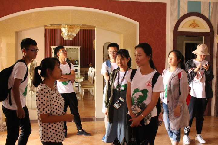 一进门,大家便被眼前的欧式园林风格建筑群震撼,首先我们来到了巴格斯酒神像前,象征着“原始自然、绿色健康”的巴格斯酒神像被置于酒庄中央,寓意着酒神将护佑着酒庄,酿出世间最美的佳酿,世代相传。酒庄负责人向我们介绍了每年九月底的“祭酒节”,他们在那一天开酒会,祭酒神,自制葡萄酒来表达丰收的喜悦以及对酒神护佑庄园源源不断酿就美酒的感恩。
