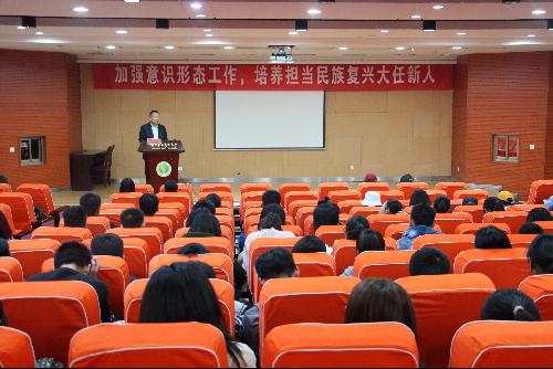党委书记胡俊鹏为学院2018级共青团员讲“学习贯彻党的十九大精神,培育和践行社会主义核心价值观”的主题团课。