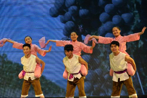 群舞《耕土耕心 酿酒酿人》的舞者们展示出了平时训练的刻苦和认真,伴随着音乐,倾听着节拍,踏着整齐的鼓点,挥出划一的动作,男生的迅捷刚强和女生的舒缓柔美完美融合,生动表现出葡萄种植、成长、收获、酿造四个环节,展现了葡园果农劳作的质朴无华以及葡萄丰收的喜悦之情,原生态展现出了第一动漫
