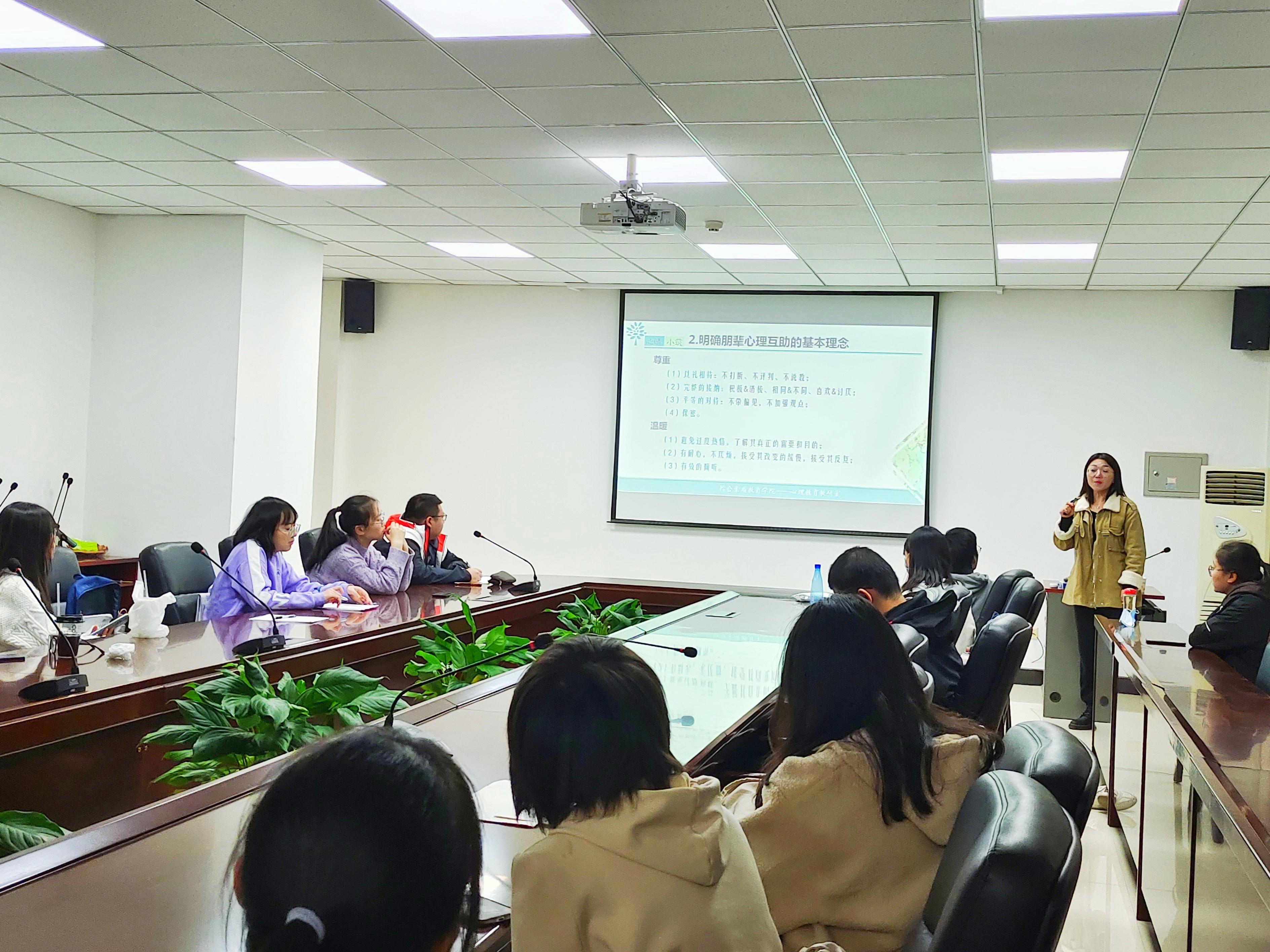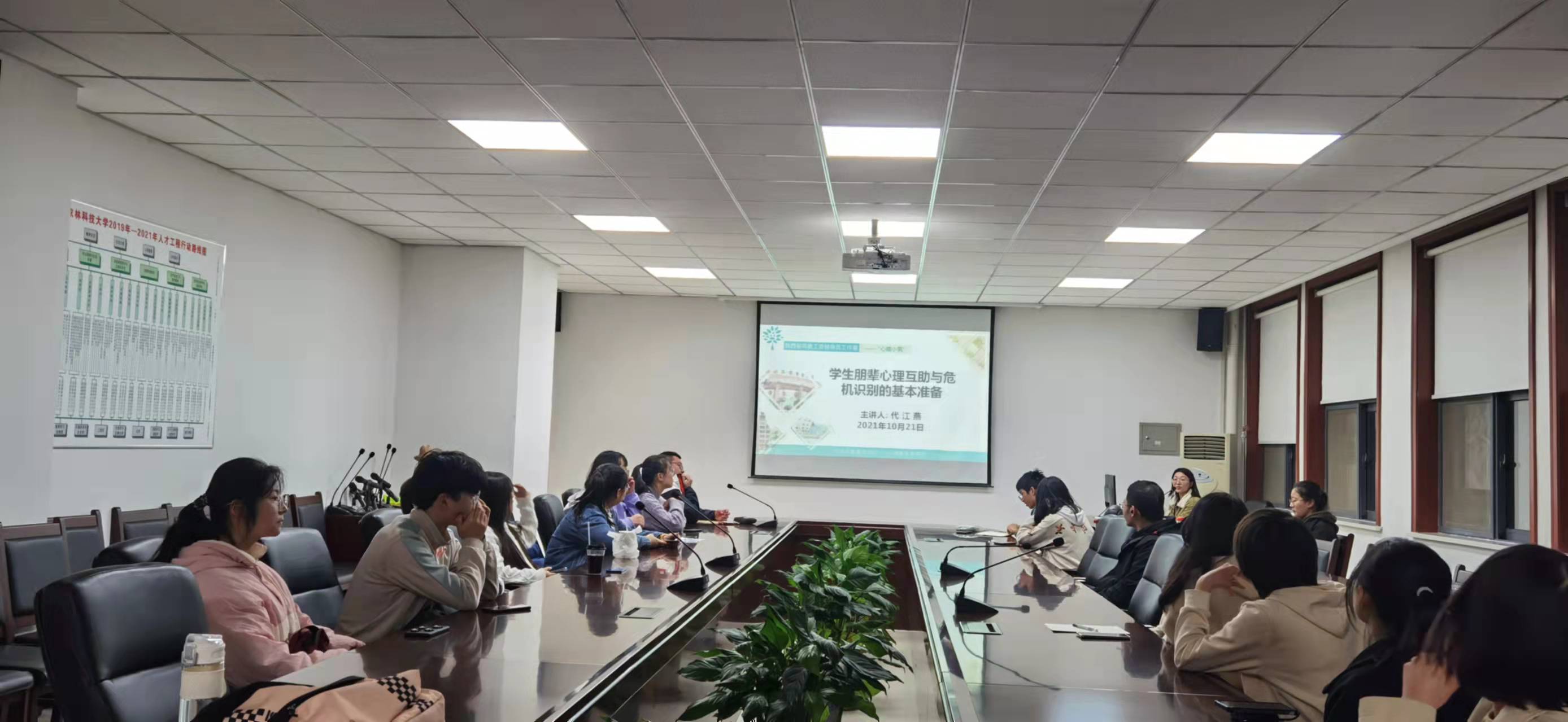 邀请心理咨询中心代江燕老师为20、21级心理委员们做题为"学生朋辈心理互助与危机识别的基本准备"的培训会议。