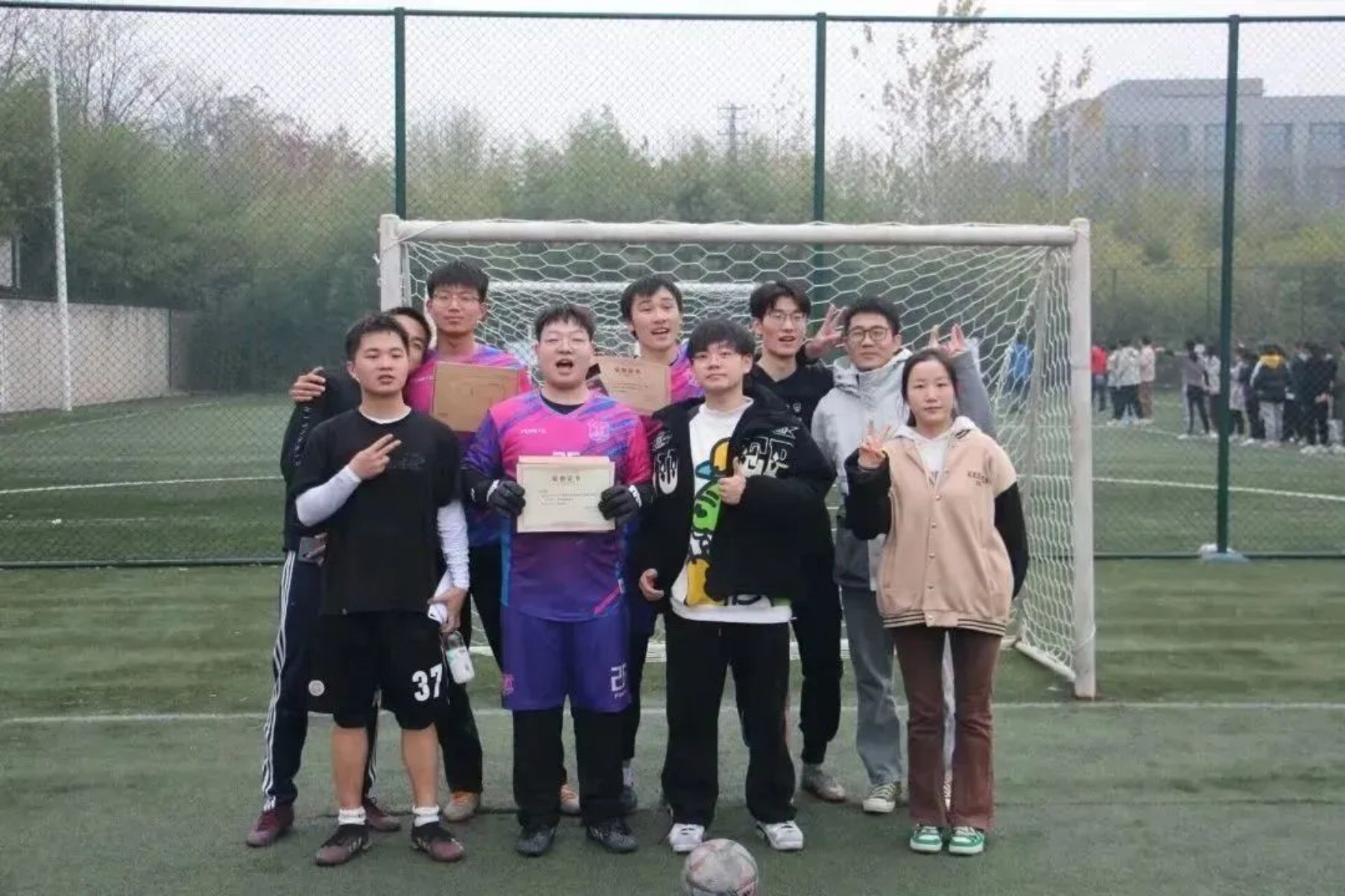 学生会和足球队在北校区小足球场联合举办了“逐梦前行,燃亮绿茵”足球五人制班级比赛。