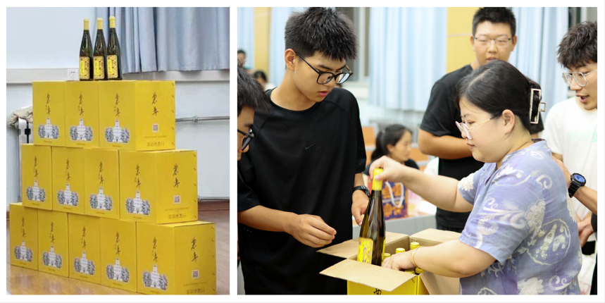 正值学校90周年校庆及中秋节来临之际,学院还为全体新生发放了由匿名校友捐赠的农专珐琅干白葡萄酒。王雅楠结合校友捐赠初心和事迹,向同学们详细介绍了“農專”二字的来源含义,将一瓶瓶饱含校友深情厚谊与产业使命传承的专属校庆纪念礼送至每名新生手中,希望大家以优秀校友为榜样,潜心专业钻研,接好兴农强国的接力棒,饮水思源,以奋斗和努力回馈母校和学院培养。