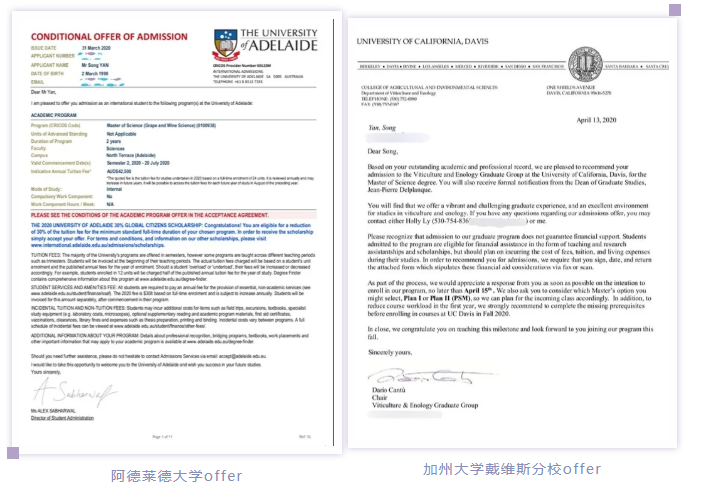 最终我选择了三所学校,美国的康奈尔大学、加州大学戴维斯分校和澳大利亚的阿德莱德大学。