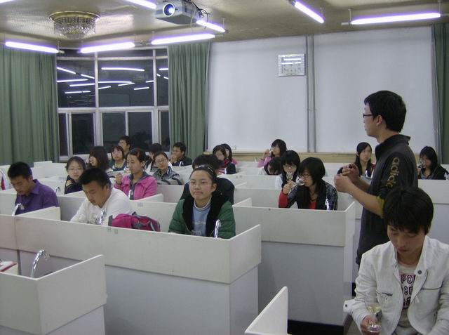 3月20日晚19:30,学生品酒俱乐部在学院品尝室举办了第一次品酒会,46名初级班的会员品尝了来自新世界的三款干白葡萄酒。 品酒俱乐部是由学生自行组建、以提高葡萄酒品尝技能和文化水平为目的的俱乐部。在学院老师的大力支持下,品酒俱乐部终于在2010年3月初正式成立了。品酒俱乐部的初衷是让学院同学(特别是没有接触葡萄酒专业课的同学)在上正式学习专业课之前进行必要的葡萄酒感官方面的了解,且对国外的葡萄酒及葡萄酒产区进行有个初步的认识,为以后的学习奠定一定的基础。俱乐部是以会员制的方式组建,并保留了适当的机动名额。品酒俱乐部按照会员的需求将会员分成初级会员和中级会员两种。 这次品酒俱乐部所品尝的三款酒分别是来自澳大利亚猎人谷Yarraman酒庄的08年的bolter 霞多丽干白、来自智利的Santa Rita 120 酒庄08年长相思干白以及来自美国加州的Beringer 2007的Classic White干白葡萄酒。 这次品酒的主要目的是为了让会员了解葡萄酒品尝的基本过程,初步培养会员对葡萄酒的兴趣,进而了解主要新世界国家葡萄酒的特点,以及对Chardonnay和Sauvignon Blanc的品种特点。 品酒活动从晚上19:30开始持续到21:30。活动开始时,会员们观看了张裕品酒师克瑞斯趣谈葡萄酒品尝的视频。然后开启了第一款酒,由同学演示并和会员交流进行葡萄酒品尝的基本过程。其次是第二款酒、第三款酒。在品尝每款葡萄酒的同时,用PPT将这款酒的基本信息以及该款酒所涉及的产区酒庄等信息和会员进行分享。在品酒的最后,会员们根据自己的感受填写了葡萄酒品尝描述记录表,并以各种形式进行了广泛地交流。