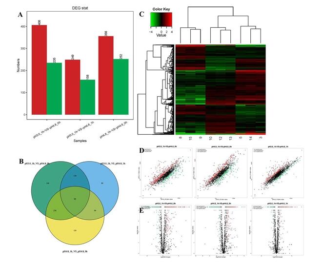 作者利用转录组测序及生物信息学方法首次从全转录组水平上鉴定了酒酒球菌中响应酸胁迫的基因的数目、种类及其功能类别,发现了一批尚未报道的胁迫应答相关基因,并通过生物信息学方法分析了其涉及到的代谢通路,为研究酒酒球菌酸胁迫应答机制提供了大量的数据基础和新线索。