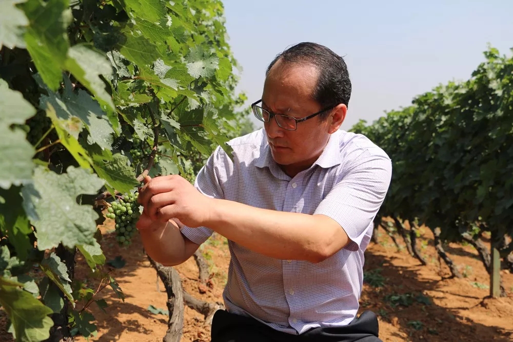 初见到杨雪峰时,他正在葡园查看酒葡萄生长情况。36度的高温,汗水早已湿透了衬衫,他却毫不在意。在他眼中,这一颗颗饱满的“小精灵”终将化作一滴滴醇香的葡萄酒,任何一个细节都不能疏忽。虽然已不再担任一线生产工作,但他仍坚持每天例行到葡萄园、生产现场走访,以便及时掌握每个工序生产情况,第一时间作出指导。