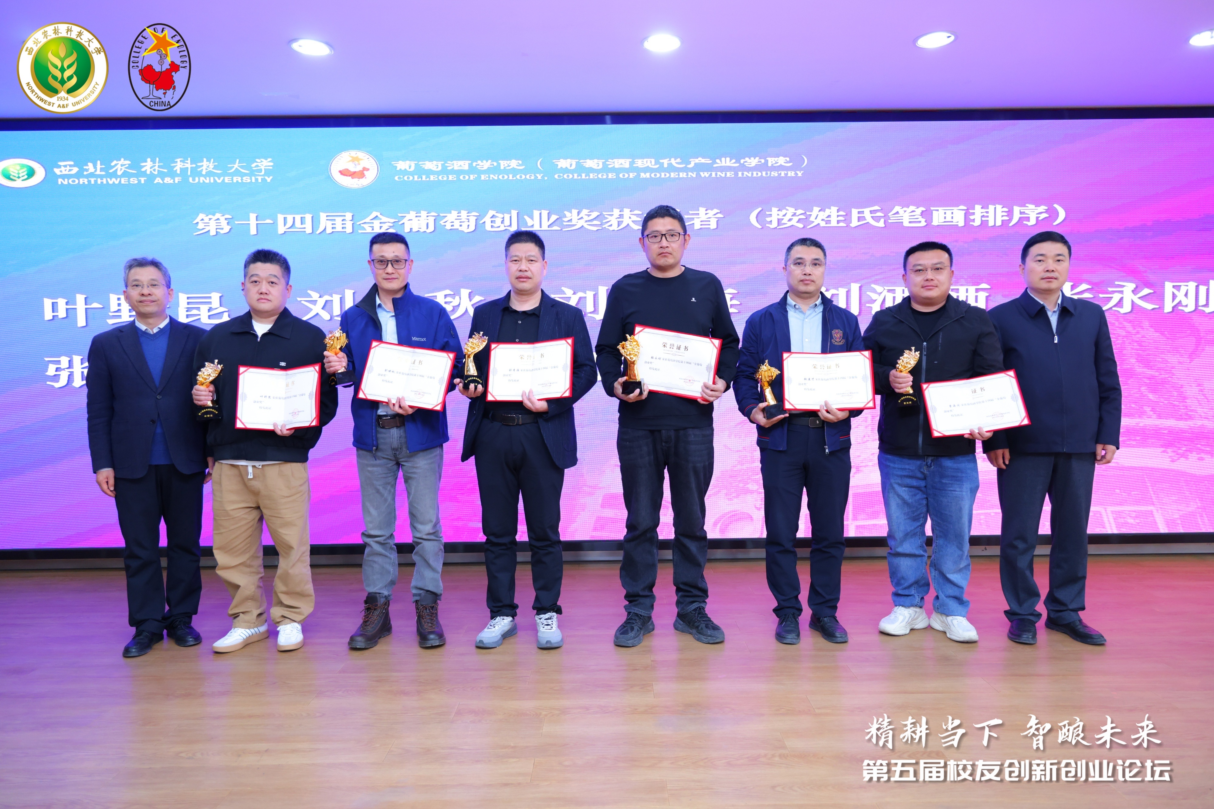 创新创业导师”,并聘任黄建清、廖祖宋等4人为葡萄酒现代产业学院卓越酿酒师班校外导师,进一步深化政产学研协同育人机制。此外,第十四届“金葡萄创业奖”揭晓,叶野昆、刘秀海等9位校友获表彰。该奖项自1999年设立以来,已累计评选108名行业领军人物,成为激励葡萄酒人开拓进取的重要标杆。