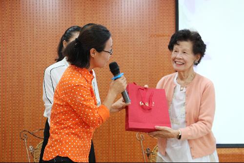 邓亚丽副书记向她送出了杭州丝绸作为母亲节礼物,同学们用热烈的掌声向张女士送上最真挚的节日祝福,张女士表示这份礼物很是特别,令人感动。