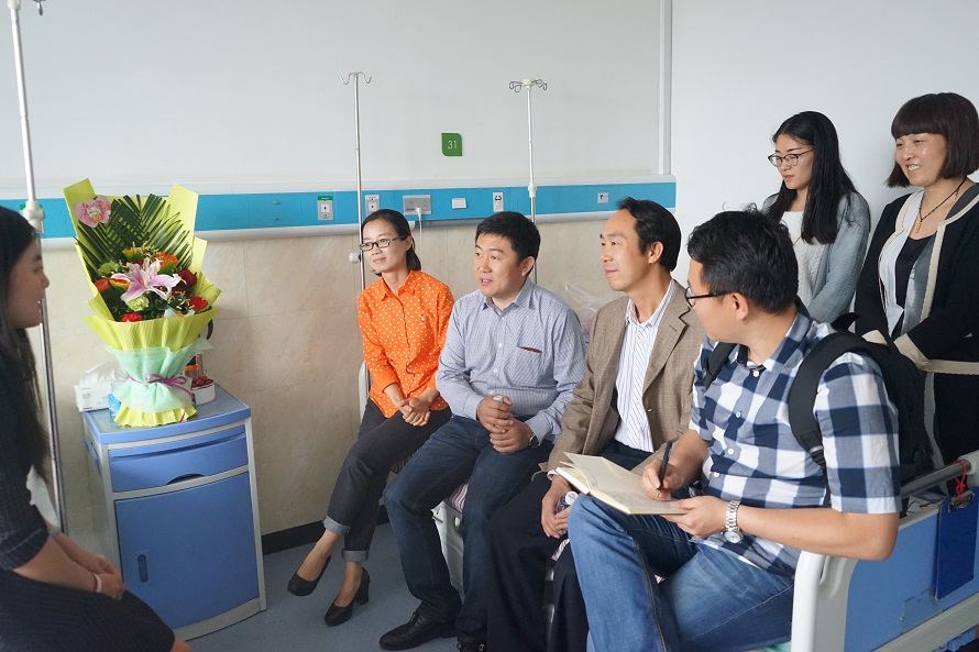 当面试组一行手捧鲜花进入病房时,鲍琪同学和其父母被学院爱生如子的行动深深感动了。面试组一行代表学院关切的询问了该生的治疗情况后,面试工作正式开始。房玉林老师向鲍琪同学介绍了第一动漫