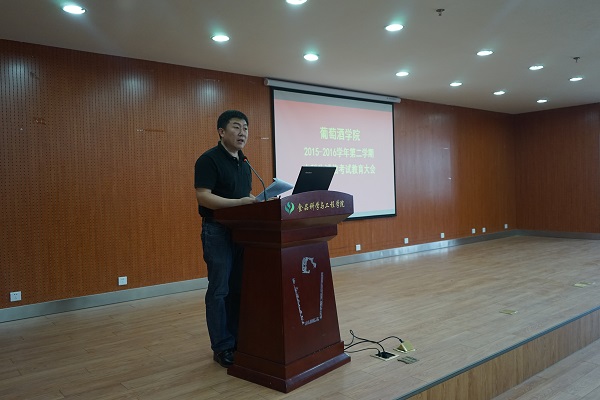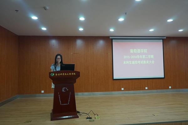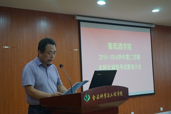 召开2015—2016学年第二学期本科生诚信考试教育大会。院党委书记胡俊鹏、副院长房玉林、院党委副书记邓亚丽出席大会,学院考务人员、全体班主任、全体本科生参加大会。大会由副院长房玉林主持。
