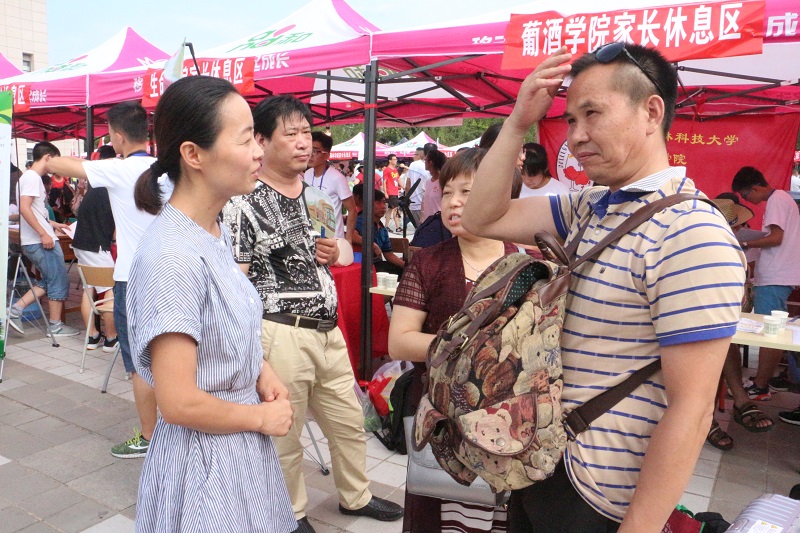 学院党委副书记邓亚丽老师第一时间到达迎新现场,指导相关工作,在家长区域向家长询问相关情况,回答家长对于学生学习、生活、奖助学金的相关问题。邓亚丽老师还和需要办理绿色通道的孩子进行亲切交谈,了解孩子的家庭情况,为学生提供方便快捷的服务,不让任何一个学生因为交不起学费上不了学,充分体现学院的人文关怀。教学副院长房玉林老师指导2015级因病复学的孩子办理相关手续,询问学生一年来的恢复情况,把学院耕土耕心,酿酒酿人的育人理念落到实处。