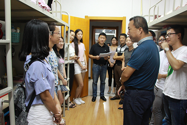 每到一个学生寝室,学院领导都与同学们亲切交流,为同学们送去学院的关心和问候。慰问期间,胡书记的关怀之情溢于言表,耐心与同学们交谈,询问每一个人的家乡和本科所在的大学,从外校考来的同学能否适应学校的饮食习惯,有什么困难或者需要什么帮助等。