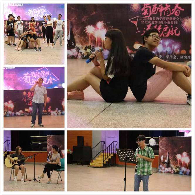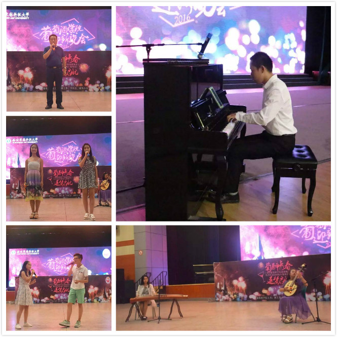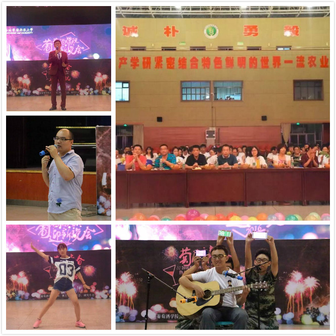 为表达学院对2016届本科生及研究生的热烈欢迎和由衷关爱,让新生们感受到来自葡酒大家庭的温暖,进一步激发新生们的爱院、荣院情怀,同时缓解小葡萄们军训之后的疲惫之感,9月5日晚七点半,由学院团工委、学生会、研究生会组织策划的迎新晚会“萄醉青春,逐梦启航”于北绣大厅隆重举行。党委书记胡俊鹏、副院长刘树文、党委副书记邓亚丽、2016级各班班主任、各年级辅导员以及所有2016级本科生、研究生参加了此次晚会。