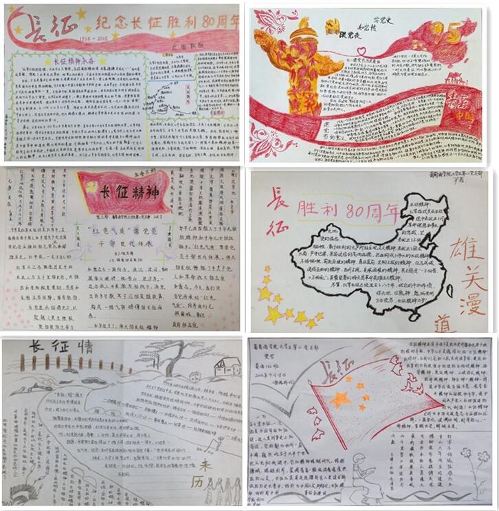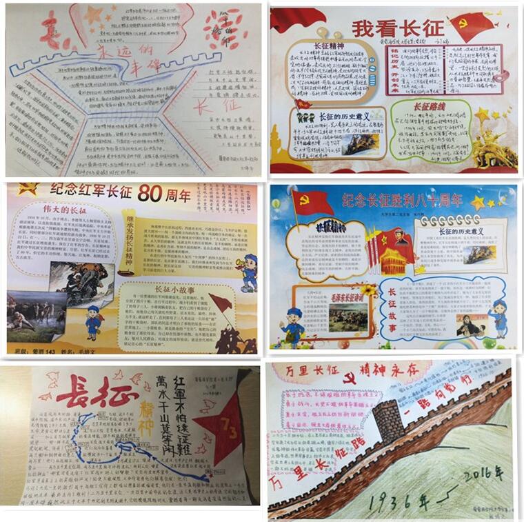 此次“传承长征精神,践行‘两学一做’”纪念红军长征胜利80周年手抄报活动是对“两学一做”学习教育的拓展与延伸,进一步激发了学生党员爱党、爱国的深切情怀,鼓励学生党员立足岗位,刻苦学习,开拓创新,努力成才,为实现中华民族伟大复兴的中国梦贡献智慧和力量。