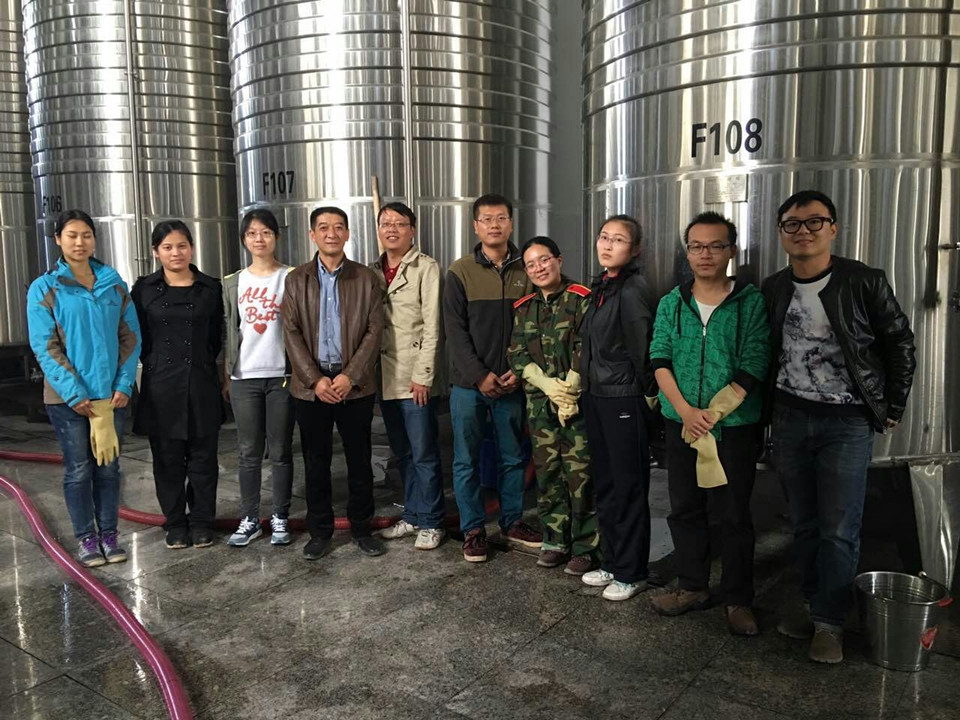 校友黄建清、齐东虎、郭亮就阳光田宇酒庄2016年的酿酒状况进行了交流,并和同学们一同品尝了当年的发酵酒,交流了品尝心得。领导们对学生在乌海的实习工作表示肯定,希望同学们明确自己作为乌海产区实习基地的开拓者和先锋的身份定位,谨记“耕土耕心,酿酒酿人”的院训,以一定要把乌海实习基地建设好的坚定信念踏实工作、认真负责地把剩下的实习工作完成好,为加强校企合作,推进第一动漫