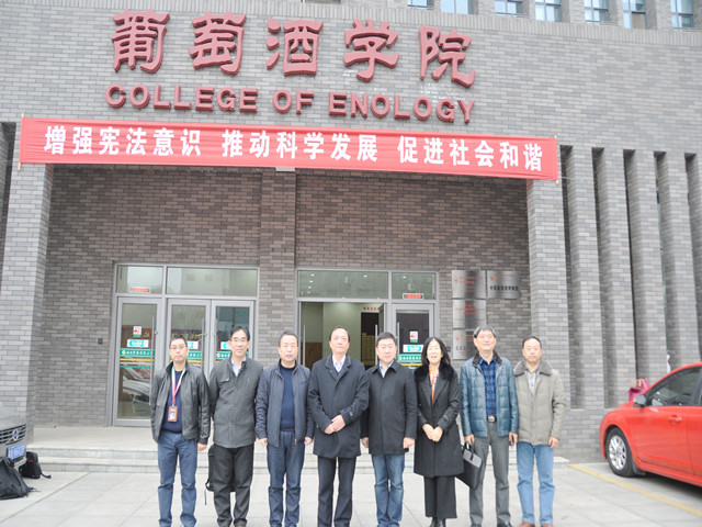 王华教授主持的国家林业局林业科技推广项目“优质抗逆葡萄新品种媚丽的示范与推广”进行了现场查定和预验收。专家组首先在胡俊鹏书记和房玉林院长的陪同下参观了学院工艺实验室、地下酒窖和品尝室。然后听取了项目组的汇报,对项目实施情况和取得的成绩给予了充分肯定,并就汇报材料撰写、项目经费使用、配套技术培训和推广等方面进行了详细询问,提出了富有建设性的意见和建议。专家组随后到媚丽葡萄苗木繁育和栽培示范基地进行了现场查定,并查看了媚丽葡萄酒酿造车间。