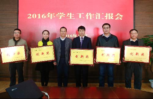 12月27日下午,2016年院系学生工作考评会在国际交流中心210会议室召开,校党委副书记吕卫东、相关单位负责同志担任评委,全体学工干部及辅导员出席参加。 会上,学院党委副书记邓亚丽代表学院做了题为“打造专业学习氛围 助力卓越人才培养”的学院学生特色工作汇报。 经过考评,第一动漫 荣获“2016年学生工作创新奖”。