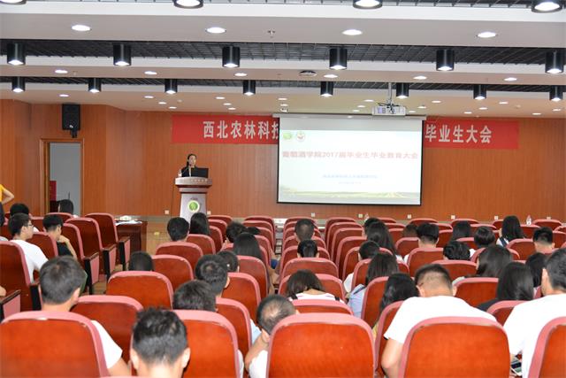 在食品-葡萄酒大楼6层报告厅召开2017届毕业生离校教育大会。毕业生辅导员及全体毕业生参加,学院党委副书记邓亚丽、院长助理刘旭副教授出席会议。会议由邓亚丽副书记主持。