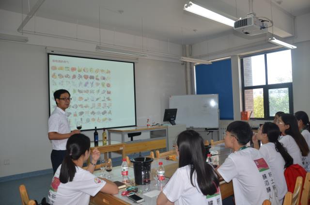 的科研团队和研究方向有更进一步的了解,学院安排了葡萄酒品尝环节,由陶永胜教授带领营员品尝了不同类型风格的葡萄酒,让营员充分领略了葡萄酒的奥妙;陶永胜教授和秦义副教授分别做了精彩的学术报告,并与营员进行了深入的交流;营员还参观了学院科研平台、导师实验室和地下酒窖,以及曹新庄葡萄基地和盛唐酒庄;7月13日全体营员还参观了张裕瑞纳城堡酒庄。