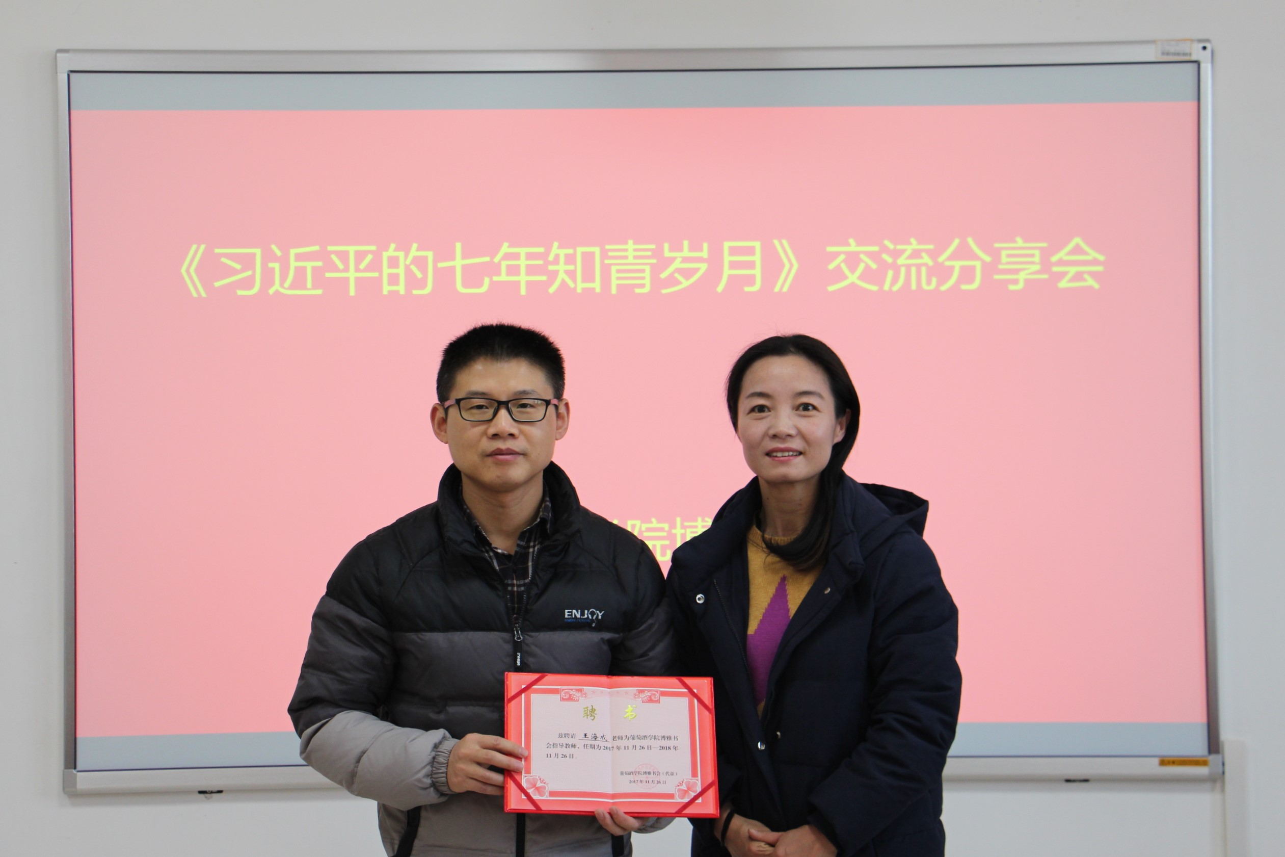 分享会上,王海成副教授结合自己的读书感悟及梁家河参观体会,率先发言。王老师动情的说:“《岁月》这本书给我的第一印象是真实,在知青岁月中所表现出的有追求、能吃苦、爱学习、办实事、重辩证、敢担当的精神,值得我和每位同学思考和学习,也启示我们只有到艰苦环境中去,才能在实践锻炼中激发潜能、积累经验,磨砺意志、增长才干,打牢成长根基”。王老师还建议同学们处理好专业学习与课外读书、精读与泛读、纸质阅读与电子阅读的关系,并重视对经典的品读,使读书真正成为大学生活的“刚需”,让读书为成长插上飞翔的翅膀。
