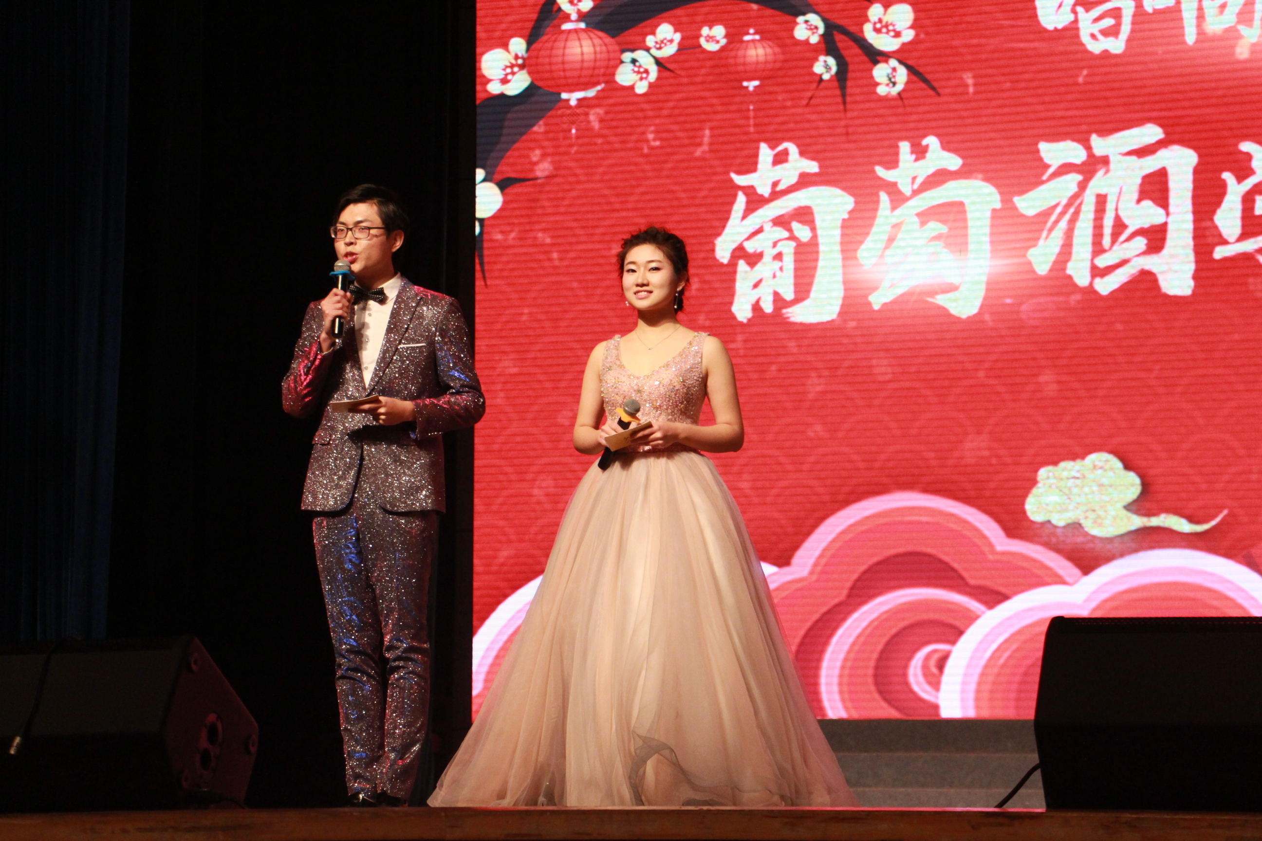 新年联欢晚会在由学院啦啦操队和学校模特队带来的《当青春遇上葡萄酒》精彩开场表演中拉开帷幕,热情洋溢、活力四射的啦啦操表演点燃了现场的气氛,手执葡萄美酒、令人目不暇接的模特走秀赢得现场阵阵掌声。学院团学干部代表及学生党员代表带来的《盛世中国》诗歌朗诵激扬澎湃、别具一格,真正展现了当代大学生应有的青春风貌和自信风采。乐曲演奏《阮之火》以乐器的精巧配合,带来了婉转悠扬、动人心扉的听觉盛宴。翩然《凉凉》舞,悠悠《沐歌》情。男女双人舞《凉凉》舞姿灵动、缠绵悱恻、荡人心田;大型舞蹈《沐歌》翩翩跃然,意境开阔,极具神韵。一曲《锦鲤抄》细腻柔美,歌声悦耳沉醉;一首《我要你》情愫暗吐,妙不可言。三句半《葡酒青年说》和小品《惊雷》的精彩演绎,令人忍俊不禁,欢声笑语盈满北绣大厅。学院惠竹梅教授带领班级学生表演的合唱《红旗飘飘》,气势浩荡,展现了葡酒师生的不凡风姿和青春活力。最后,学院全体师生的院歌合唱《团结就是力量》,将晚会气氛推向高潮,现场被葡酒师生们脸上洋溢的热情和喜悦点燃,第一动漫