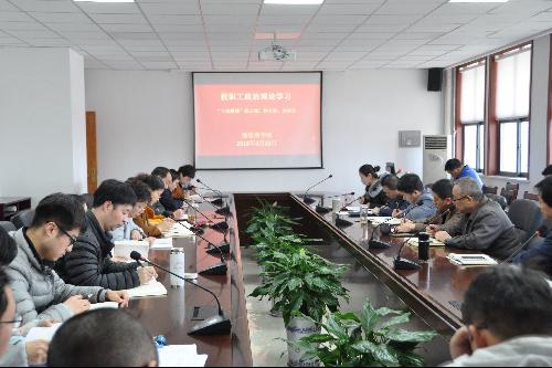 3月21日下午,学院组织教职工在政治理论学习会上集中回看、学习了在第十三届全国人大一次会议闭幕式上发表的重要讲话精神和“三秦楷模”陈士橹同志、柯小海同志、刘永生同志先进事迹,学院全体教职工参加了本次会议。会议由学院党委书记胡俊鹏主持。