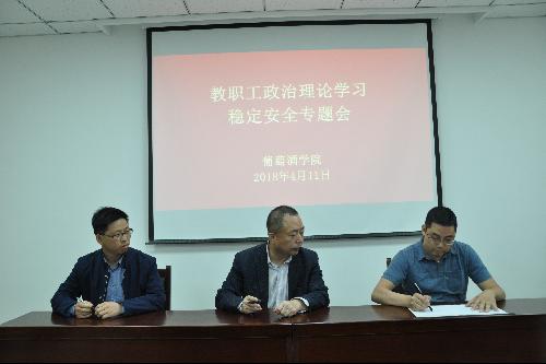 召开了校园稳定、交通安全和实验室安全管理专题会议,会议由学院党委书记胡俊鹏主持,学院全体教职工参加了本次会议。