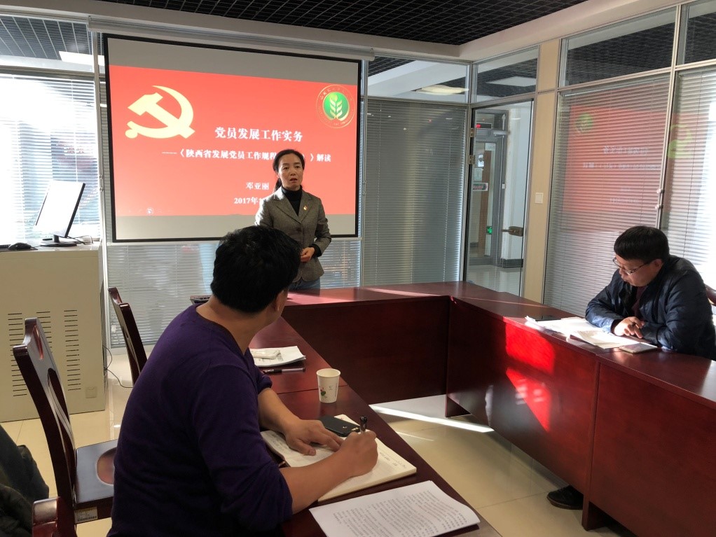 本次党课以“党员发展工作务实”为主题,从入党积极分子的确定和培养教育、发展对象的确定和考察、预备党员接受和预备党员教育考察和转正四个方面开展,详细解读了《陕西省发展党员工作规程(试行)》。