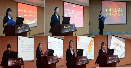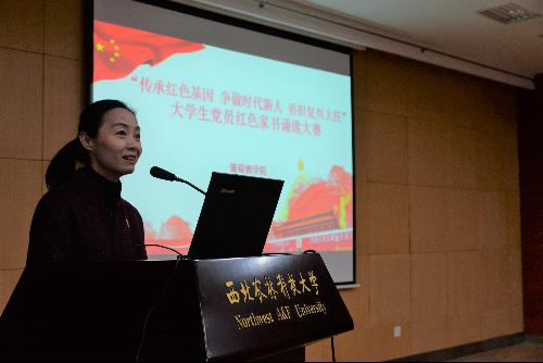 赵志业老师和高宝山老师对本次比赛给予了高度评价,他们希望广大党员在本次活动的感召下,认真诵读和学习红色家属中的经典名篇,学习革命先烈的光辉事迹,要秉承和发扬革命精神,为学校,为国家的发展贡献自己的力量。经过评委打分,王雅楠获得一等奖,兰惠晶、叶言文获得二等奖,任一曌、袁林、杨明昊获得三等奖,林佳丽、周松、陈莉、 吴璐璐、曾桂花、康馨文、王文获得优秀奖。