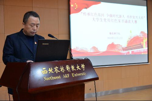 最后,胡俊鹏书记对本次比赛做了高度总结,此次诵读大赛不仅是一次比赛,更是一次红色精神和传统经典的分享会。通过诵读红色家书,让同学们感受到先烈为独立而奋起抗争的勇气,感受到中华儿女为挽救民族危亡而无私奉献的精神。朗诵中华经典,让同学们从一封封家书和一篇篇传统经典中不断汲取精神营养,传承红色基因和中国文化,为实现“两个一百年”的奋斗目标,贡献青春力量!