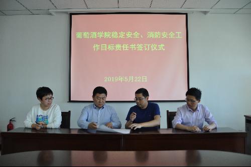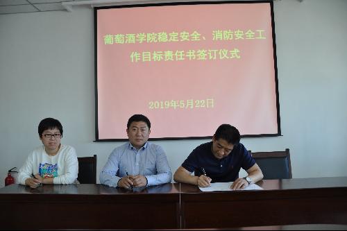 会上,对关于进一步加强学院稳定安全、消防安全工作进行了部署安排,学院党政主要负责人与分管工作领导及部门负责人签订了稳定安全、消防安全工作目标责任书。