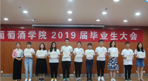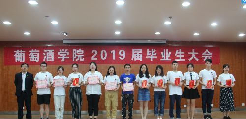 随后,毕业研究生代表鞠延仑、毕业本科生代表鲍琪分别表达了对师长的孺慕之情与对学院的教诲之恩,教师代表孟江飞副教授为全体毕业生送上了拳拳叮嘱和殷殷希冀。 最后,大会对先进个人进行了表彰。刘树文副院长为2019届兼职校友联络员颁发聘书,王华教授为获奖学生颁发华王NO.1奖励金证书,邓亚丽副书记为获奖学生颁发萨意·卓越葡酒人培育基金证书,LAFFORT公司陈云海先生为获奖学生颁发LAFFORT奖学金证书, 陶永胜教授为学院2019届优秀毕业生、志愿服务边疆建设优秀毕业生颁发证书,党委书记胡俊鹏为全国高校“百名研究生党员标兵”、校级“十佳毕业生”、校级“优秀毕业生”颁发证书,房玉林院长为优秀本科毕业论文指导教师颁发院长基金奖励证书及奖金,李华教授为获奖学生颁发李华科研创新奖学金证书证书及奖金。