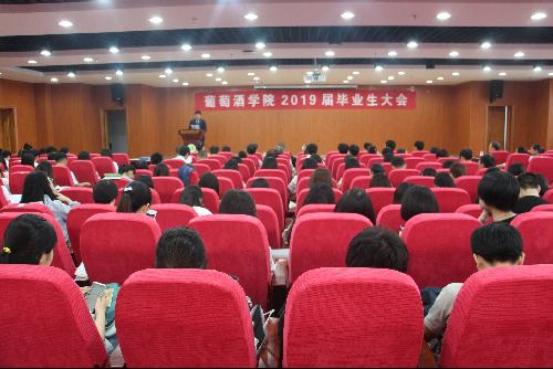 2019届毕业生大会在葡萄酒大楼6层报告厅隆重举行。学院领导、全体教职工、毕业生家长代表、热心教育事业的企业家代表及全体2018届毕业生参加大会。大会由学院党委副书记兼副院长邓亚丽主持。