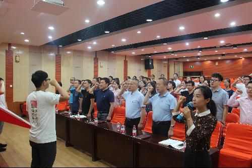 大会伊始,在学院党委副书记邓亚丽的带领下,全体师生党员面向党旗庄严宣誓,预备党员入党宣誓,正式党员重温入党誓词,进一步激发了师生党员为共产主义事业